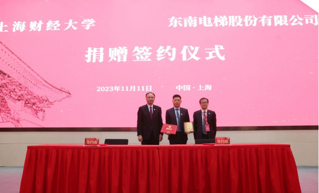 秦健聪校董校友毕业于我校1997届企业管理硕士专业,他创建东南电梯股份有限公司,从一个小厂成长为中国房地产开发企业500强首选供应商民族电梯品牌,为民族品牌的振兴贡献了巨大的力量;他心系母校发展,曾捐赠支持长三角与长江经济带发展研究院建设和学校疫情防控工作。他谈到:感谢母校对我们的培养以及持续的赋能,服务国家的国之大器,企业需要科研人才、财务人才,也迫切需要经济人才;此次捐赠将重点围绕五育并举,支持学校美育融合实践教育基金,助力形成全覆盖、多样化、高质量的上财特色美育育人工作体系。
