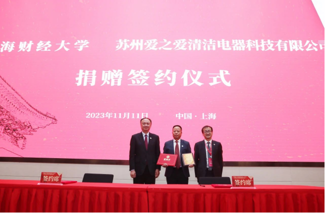 “我难以忘怀在上财的学习、生活、工作,以及上财对我的帮助,实体制造业的实习对上财学子很有益处,热烈欢迎上财的优秀人才。”佘自强校董校友毕业于我校1990届财政学硕士专业,他创建苏州爱之爱清洁电器科技有限公司,关注民生;他关心学校发展,曾捐资赠物,帮助改善在校学生学习和生活条件。本次捐赠将重点围绕立德树人的根本任务,支持学校时代新人专项培育工程项目,重点围绕沉浸式“大师系列校园剧”、匡时大师系列文化景观、思政骨干培育项目等三个方向,构筑大思政引领下的匡时校园文化项目体系。