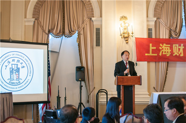 上海财经大学校长、校友总会会长樊丽明教授通过视频发表讲话。她代表学校向上海财经大学美国校友会的成立表示热烈的祝贺!向奋斗、工作在美国的上财校友们表示亲切的慰问!她向美国校友介绍了母校的辉煌历史与近年来非凡的发展成就。樊校长希望美国校友会成为在美上财校友信息交流、相互支持、联络母校的平台,以实现“服务校友发展、服务母校发展”的宗旨。