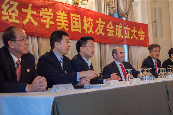 中国驻纽约总领事馆教育参赞徐永吉、新泽西城市大学校长Sue Henderson 、 纽约长岛大学管理学院院长 Ray Pullaro、上海财经大学原校长汤云为教授、合作发展处陈红梅处长、公共经济与管理学院俞卫院长、信息管理与工程学院岳劲峰院长、金融学院王能院长应邀出席成立大会。来自美国15个州150余位在美校友赶赴纽约共襄盛典,他们之中既有旅居美国的老校友,亦有初到美国留学工作的年轻校友。上海财经大学澳大利亚校友会、大连校友会、广西校友会、深圳校友会代表专程赴纽约共同祝贺美国校友会成立大会的召开。北京大学、清华大学、复旦大学、上海交大、浙江大学等国内多所高校的美国校友会, 中国高校北美校友会联盟代表到场见证。