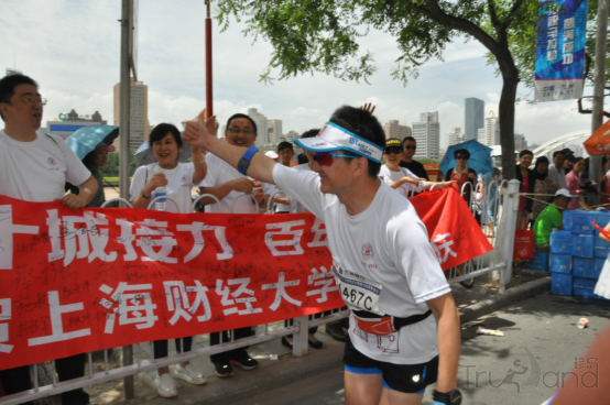 由于1500米的海拔高度和中午热度逼人的烈日让赛程变得越发艰难,但是参加比赛的校友却始终坚持完赛,更因为有了助威团鼓舞人心的加油呐喊声,让他们在无法坚持奔跑的时候,再次起跑。有校友用尽全力在关门时间之内越过终点线,也有校友即使没有官方成绩,也绝不轻言放弃。正如一位校友赛后说道,马拉松精神就是认准了目标,一步一步向前迈进,只要坚持就必有一时会到达终点。