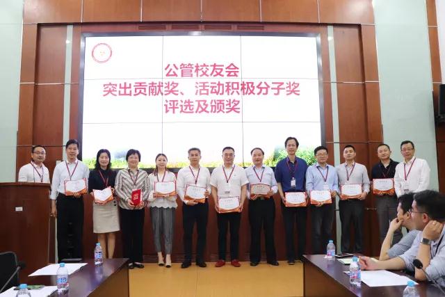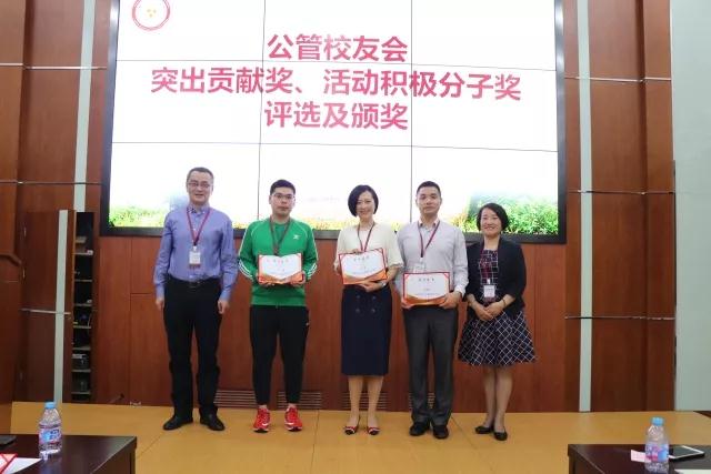 随后由沈晖主任、杨擎宇副处长、刘小兵院长与方芳书记分别为2017年度公管校友会突出贡献奖与活动积极分子奖获奖者颁发证书。